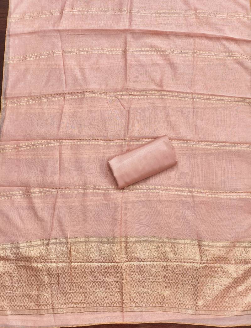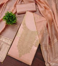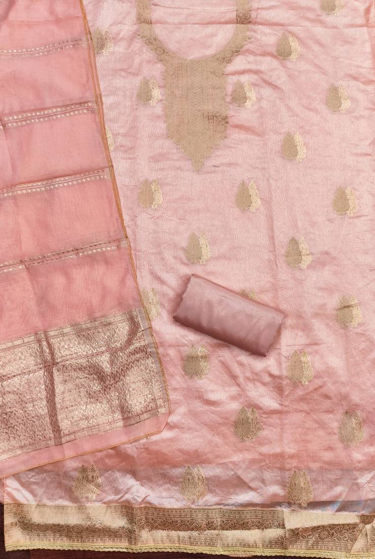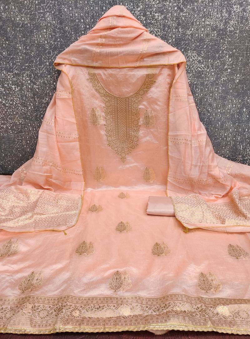 Women's peach weaving jacquard dress material unstitched