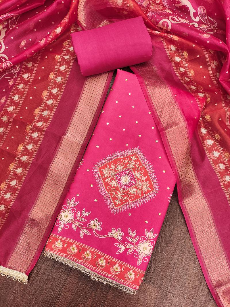 | Product Description | Women's Pink Unstitched Daimond Embroidery And Fancy Border Rayon Cotton Dress Material Having Pink Color Unstitched Bottom Of Rayon Fabric And Pink Color Dupatta Of Banarasi Organja Material With Awesome Pink Colour In Rayon Cotton Banarasi Organja Fabric With Work Of Heavy Daimond Embroidery And Fancy Border With Designer Printed Dupatta|| Images Are For The Referance Purpose Only, Color Of The Actual Product May Little Vary From The Image Due To Screen Resolution |