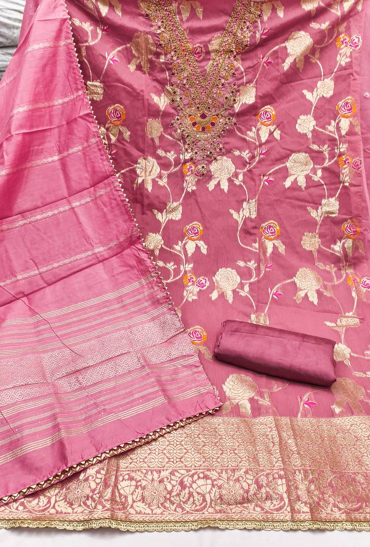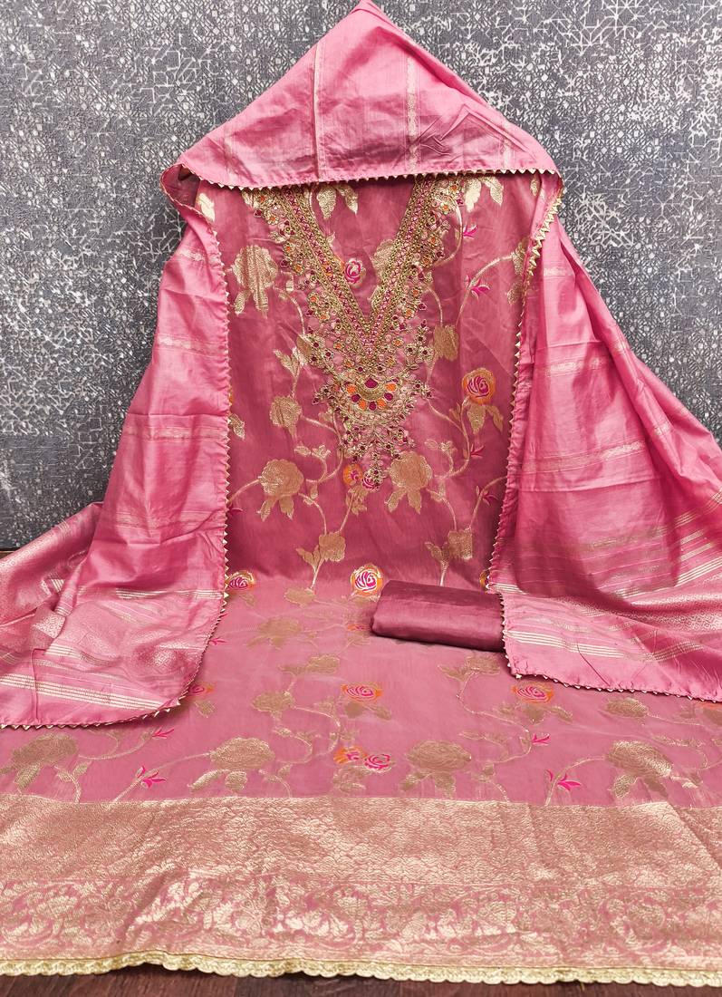 pink embroidery,weaving jacquard dress material unstitched
