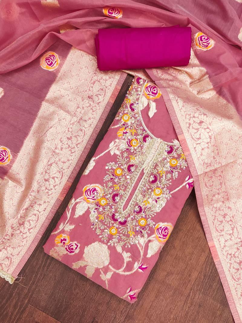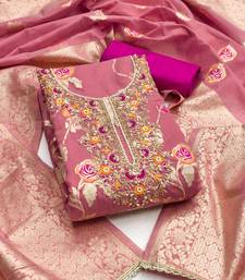 pink weaving handwork silk dress material unstitched