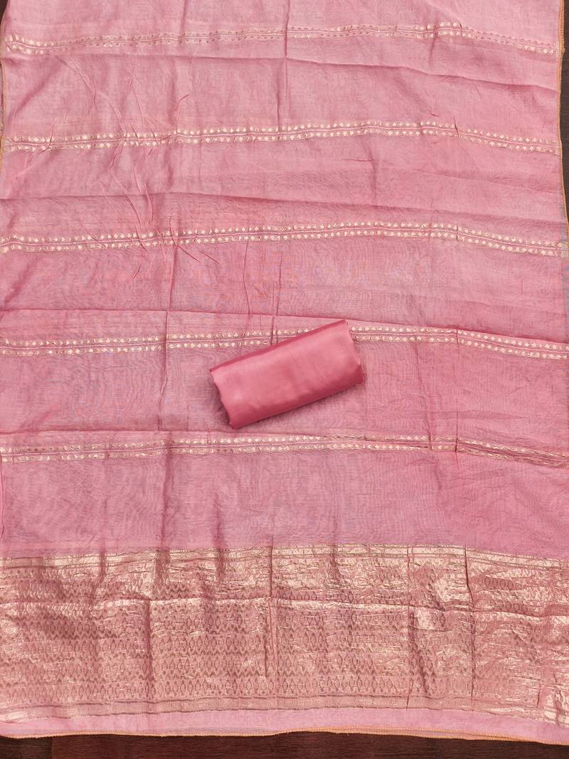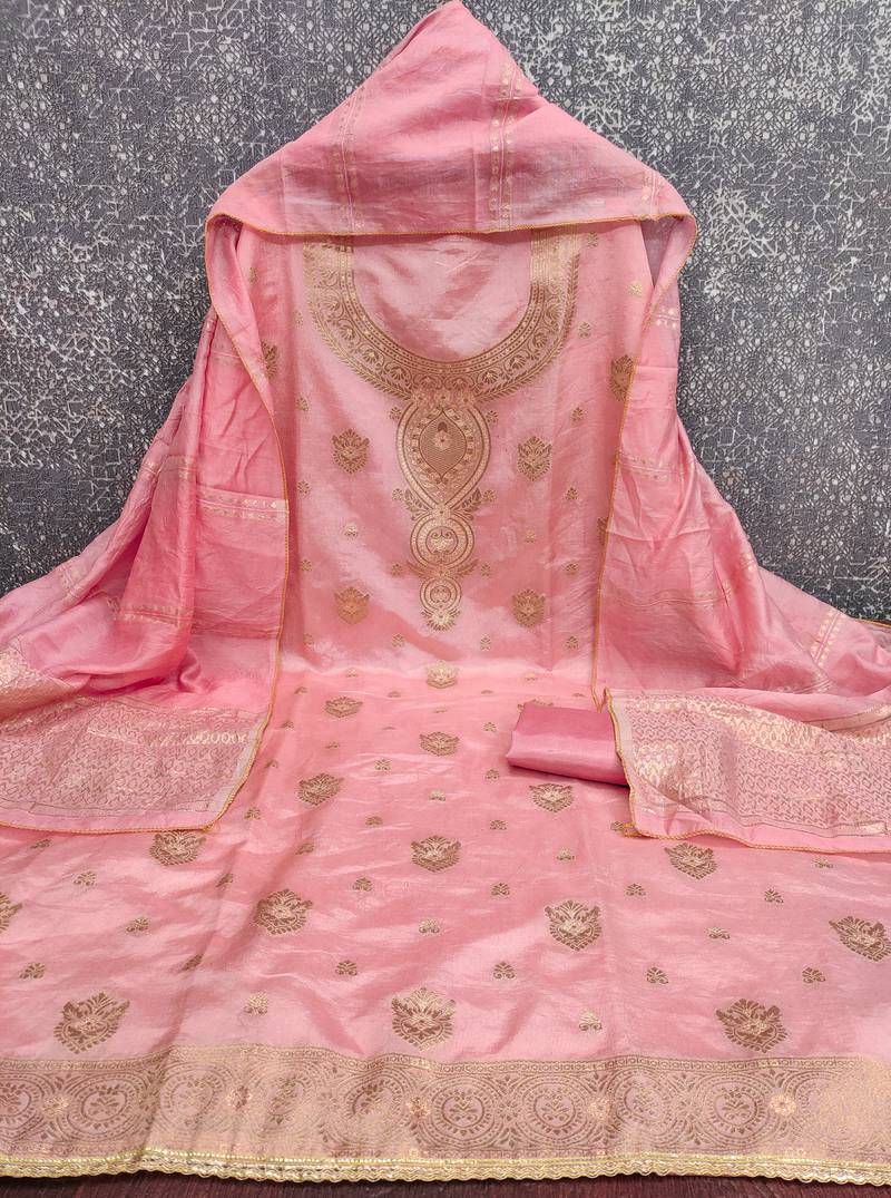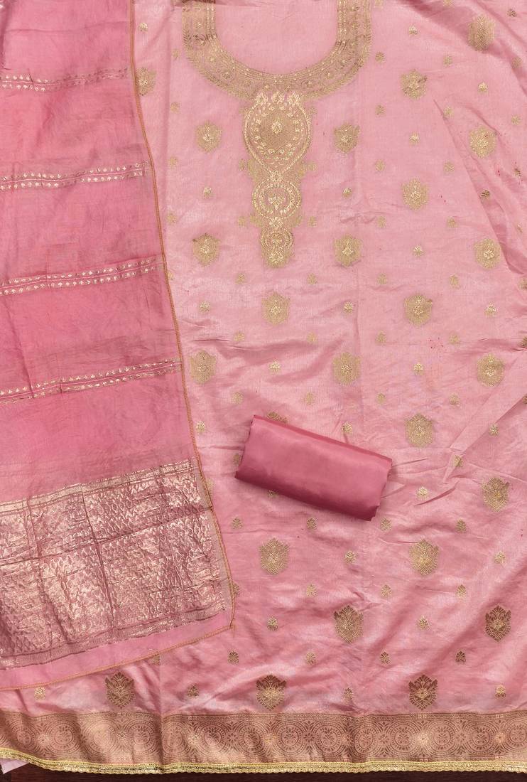 Women's pink weaving jacquard dress material unstitched
