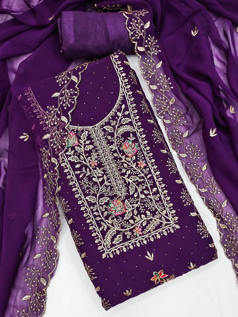 | Product Name | Women's Purple Embroidery Georgette Dress Material | |