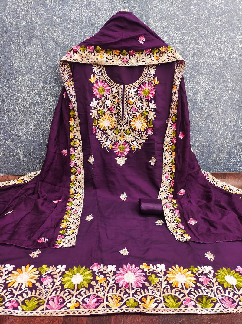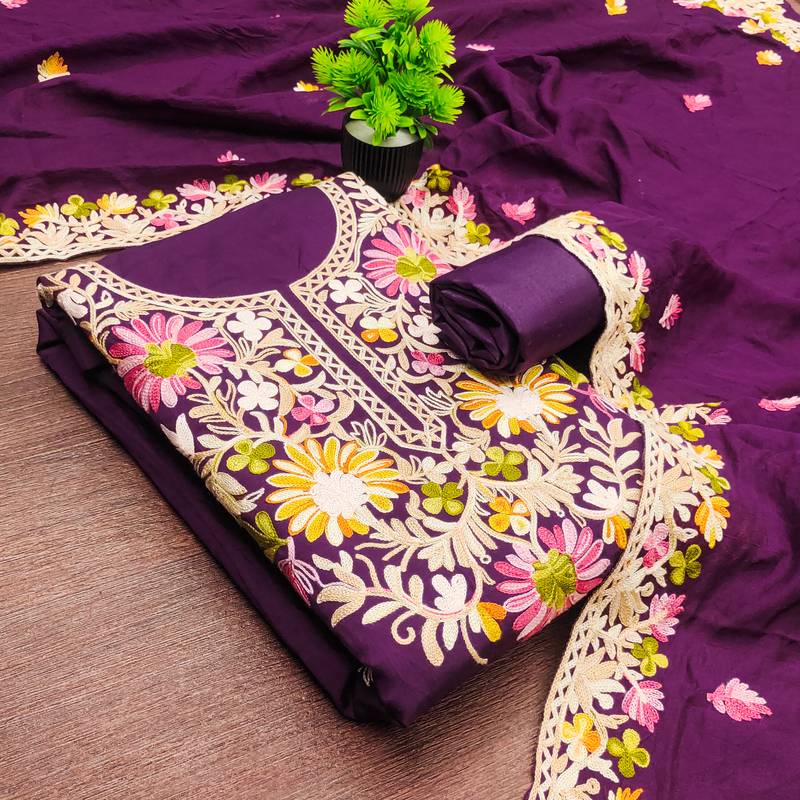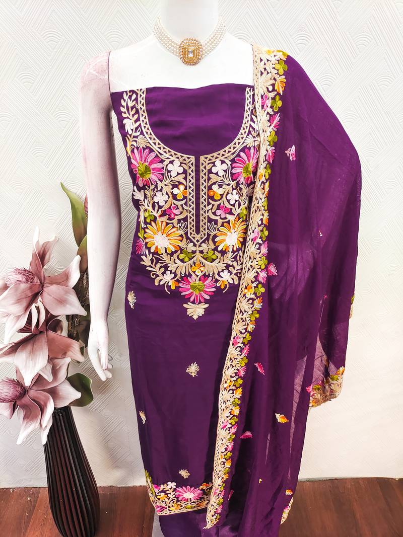 | Product Name | Women's Purple Embroidery Silk Dress Material | |