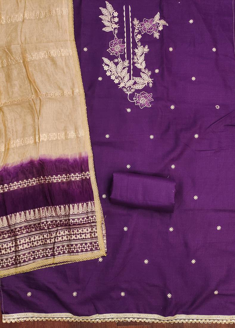 | Product Name | Women's Purple Embroidery Slub Cotton Dress Material | |