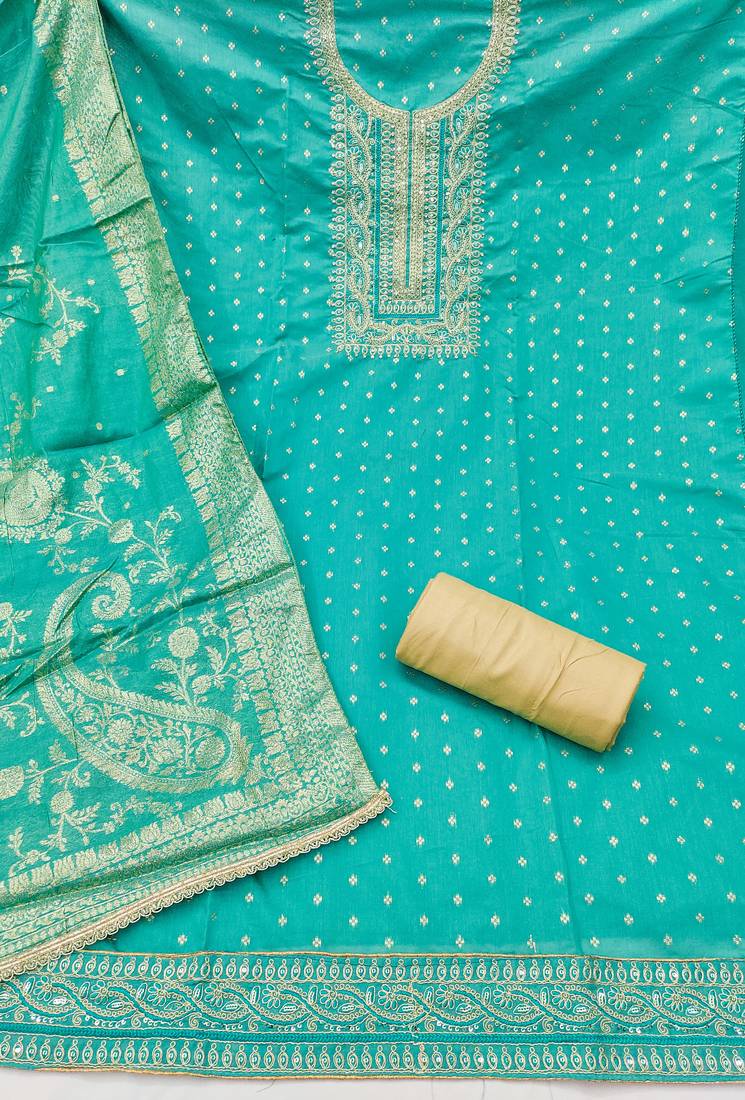 | Product Description | Women's Sea Green Unstitched Weaving Handwork And Fancy Border Modal Banarasi Dress Material Having Beige Color Unstitched Bottom Of Rayon Fabric And Sea Green Color Dupatta Of Banarasi Material With Awesome Sea Green Colour In Modal Banarasi Rayon Fabric With Work Of Heavy Weaving Handwork And Fancy Border With Designer Woven Dupatta|| Images Are For The Referance Purpose Only, Color Of The Actual Product May Little Vary From The Image Due To Screen Resolution |
