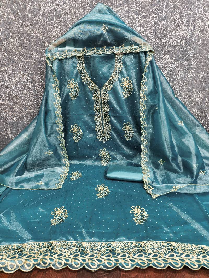 | Product Name | Teal Unstitched Diamond Organza Embroidered Dress Material | |