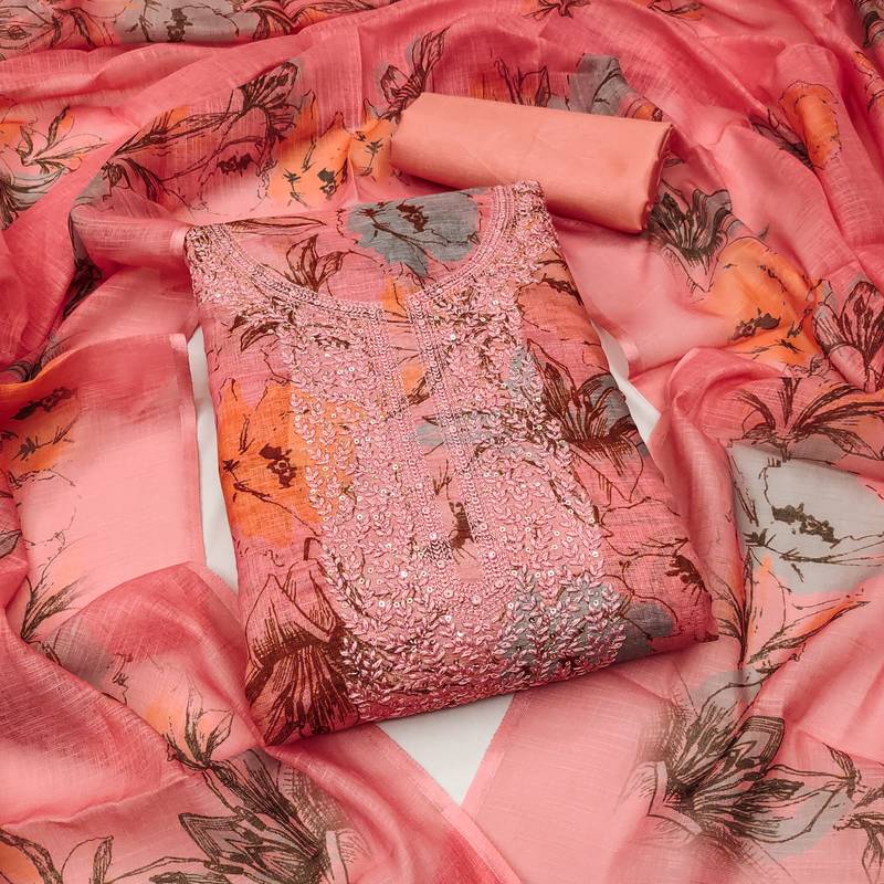 | Product Description | Women's Peach Unstitched Heavy Neck Embroidery Digital Print And Fancy Border Mal Cotton Dress Material Having Peach Color Unstitched Bottom Of Santoon Fabric And Peach Color Dupatta Of Mal Cotton Material With Awesome Peach Colour In Mal Cotton Santoon Fabric With Work Of Heavy Neck Embroidery Digital Print And Fancy Border With Designer Printed Dupatta|| Images Are For The Referance Purpose Only, Color Of The Actual Product May Little Vary From The Image Due To Screen Resolution |