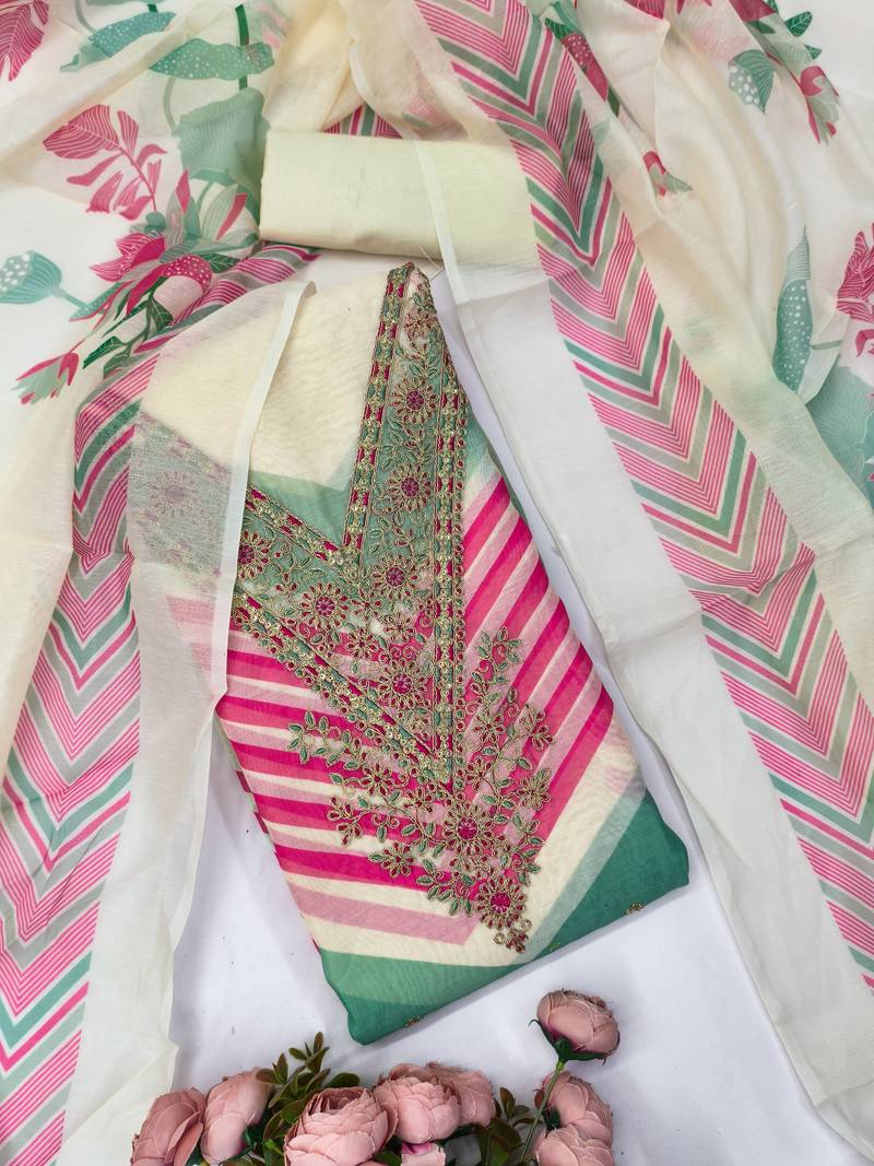 | Product Description | Women's Multi Unstitched Neck Embroidery Digital Print Chanderi Silk Dress Material Having White Color Unstitched Bottom Of Santoon Fabric And Multi Color Dupatta Of Chanderi Silk Material With Charming Multi Colour In Chanderi Silk Santoon Fabric With Work Of Heavy Neck Embroidery Digital Print And Fancy Border With Designer Printed Dupatta|| Images Are For The Referance Purpose Only, Color Of The Actual Product May Little Vary From The Image Due To Screen Resolution |