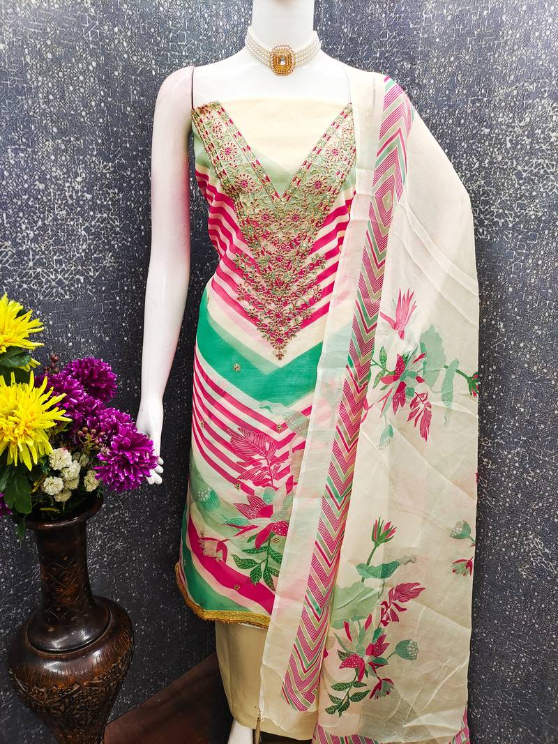 Women's embroidery digital print silk dress material unstitched