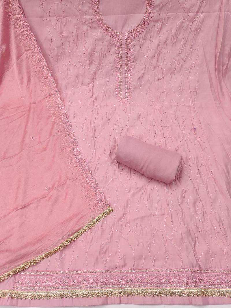 handwork embroidery cotton silk dress material unstitched