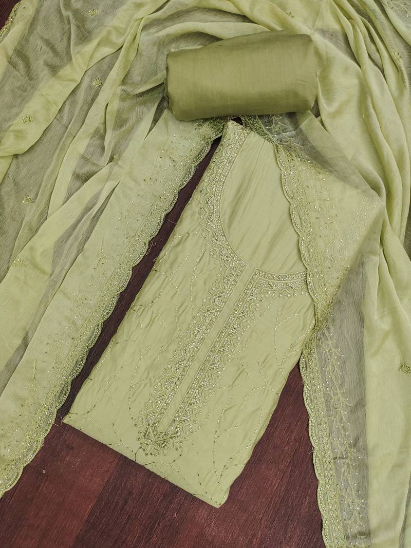| Product Description | Women's Olive Green Unstitched Heavy Handwork Embroidery P V Cotton Silk Dress Material Having Olive Green Color Unstitched Bottom Of Rayon Fabric And Olive Green Color Dupatta Of Nazneen Material With Amazing Olive Green Colour In P V Cotton Silk Rayon Nazneen Fabric With Work Of Heavy Handwork Embroidery And Fancy Border With Designer Embroidered Dupatta|| Images Are For The Referance Purpose Only, Color Of The Actual Product May Little Vary From The Image Due To Screen Resolution |