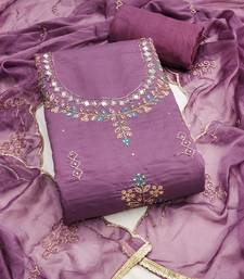 Lavender handwork embroidered cotton silk dress matarial unstitched