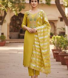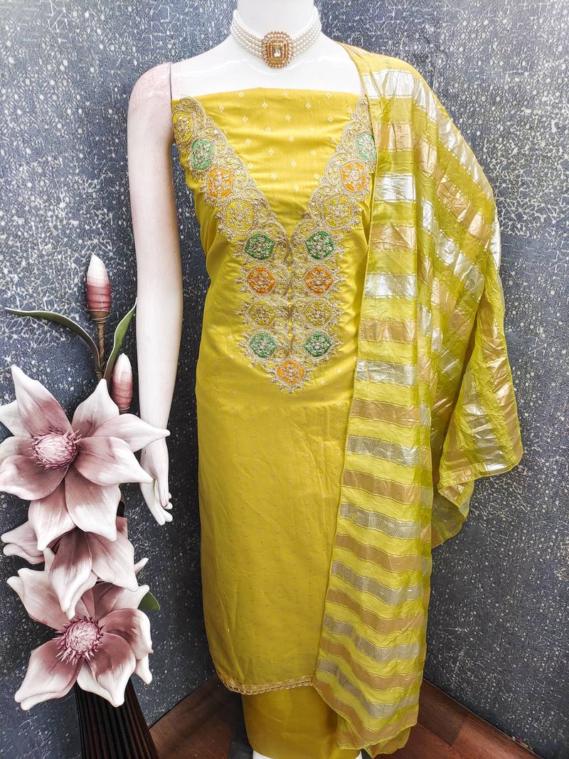 Green unstitched chanderi dress material for women