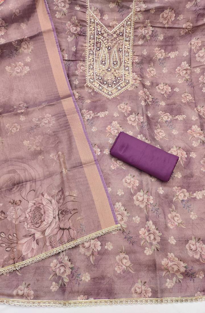 | Product Name | Voilet Print Handwork Viscose Dress Material | |