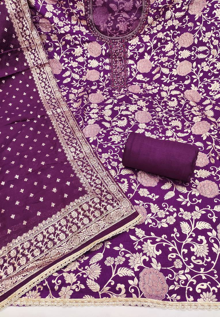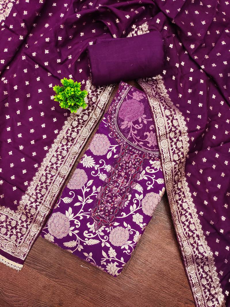 | Product Description | Women's Voilet Unstitched Heavy Weaving Handwork And Fancy Border Jacquard Dress Material Having Voilet Color Unstitched Bottom Of Rayon Fabric And Voilet Color Dupatta Of Banarasi Jacquard Material With Awesome Voilet Colour In Jacquard Rayon Banarasi Jacquard Fabric With Work Of Heavy Weaving Handwork And Fancy Border With Designer Woven Dupatta|| Images Are For The Referance Purpose Only, Color Of The Actual Product May Little Vary From The Image Due To Screen Resolution |
