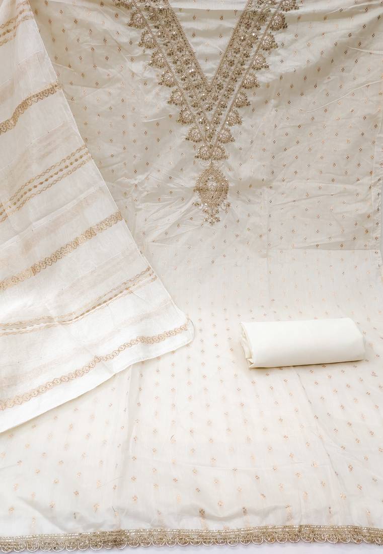 | Product Name | White Embroidery Chanderi Jacquard Dress Material | |