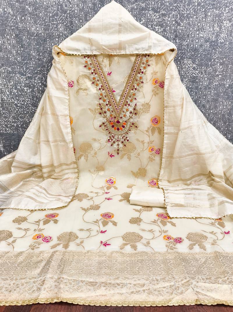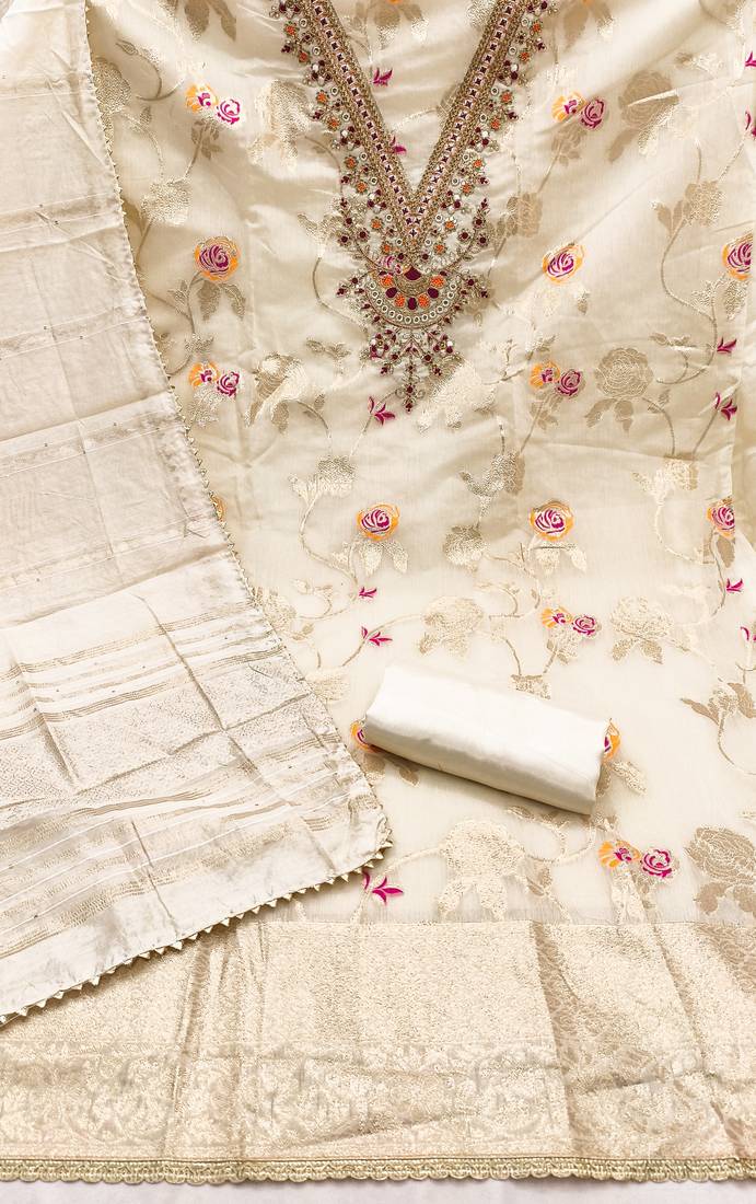 white embroidery,weaving jacquard dress material unstitched