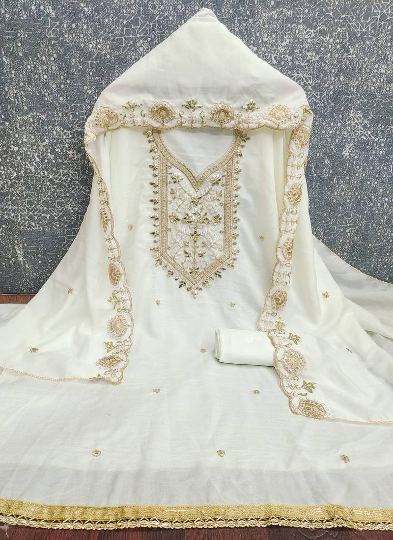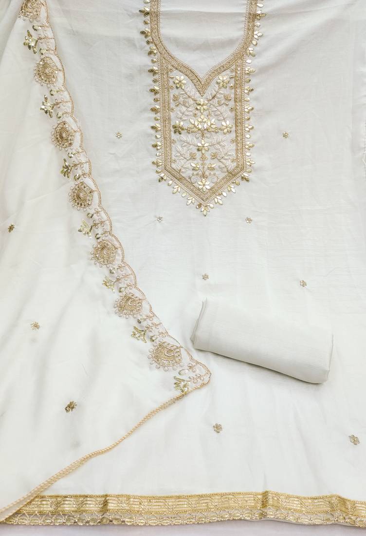 | Product Name | White Heavy Embroidery Vichitra Dress Material | |