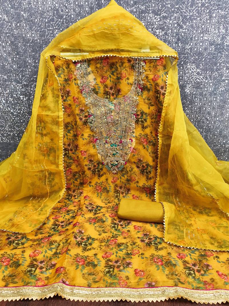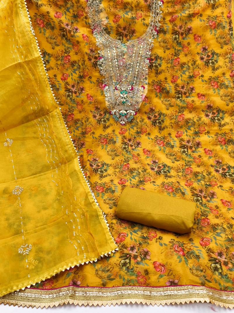 | Product Name | Yellow Embroidery Print Organza Dress Material | |