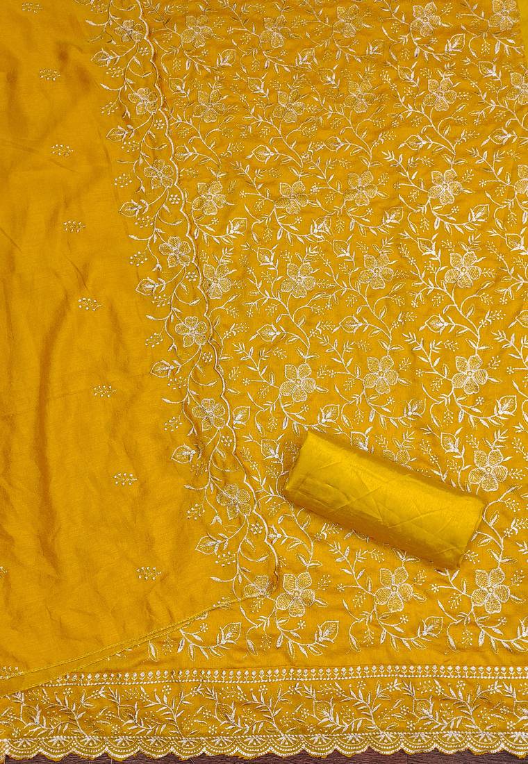 | Product Name | Women's Yellow Embroidery Vichitra Cotton Dress Material | |