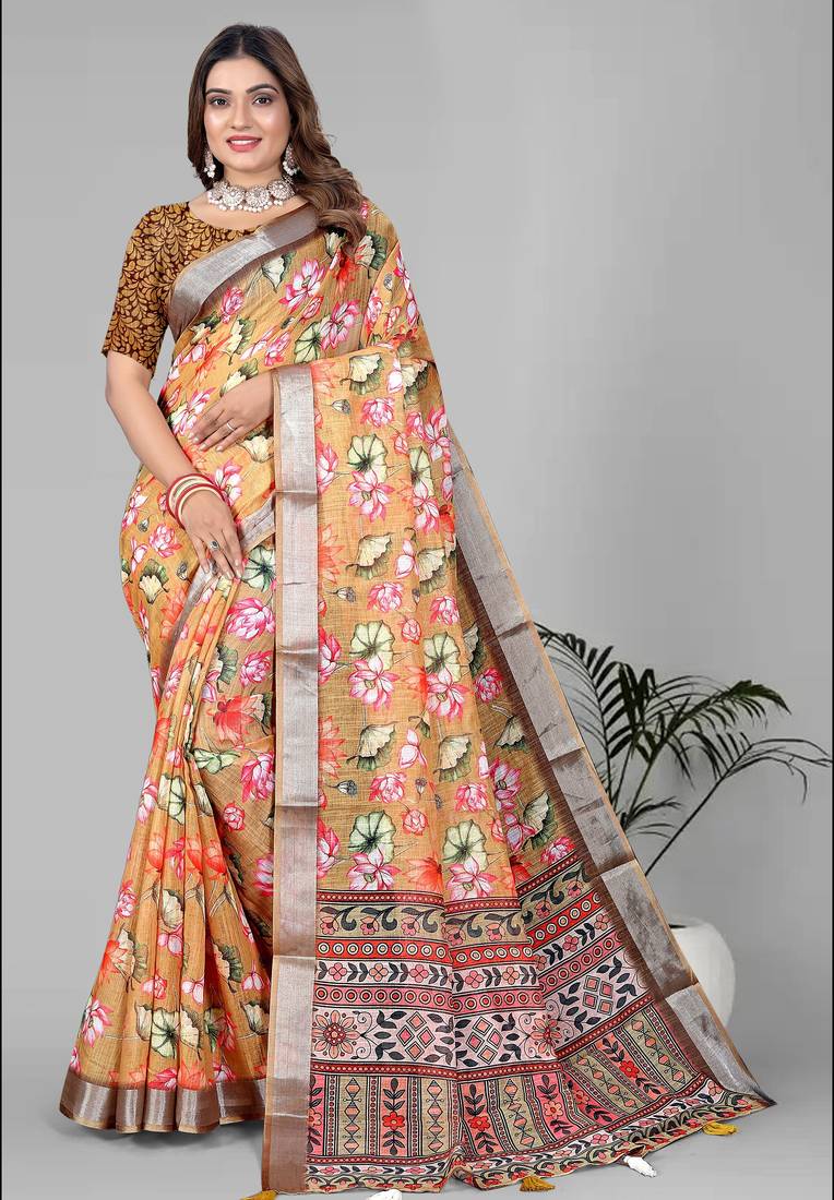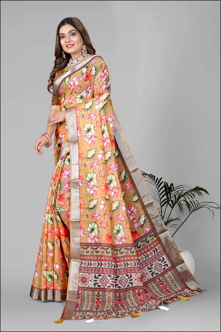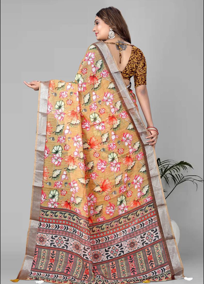 | Product Name | Mustard Floral Linen Cotton Digital Print Saree | |