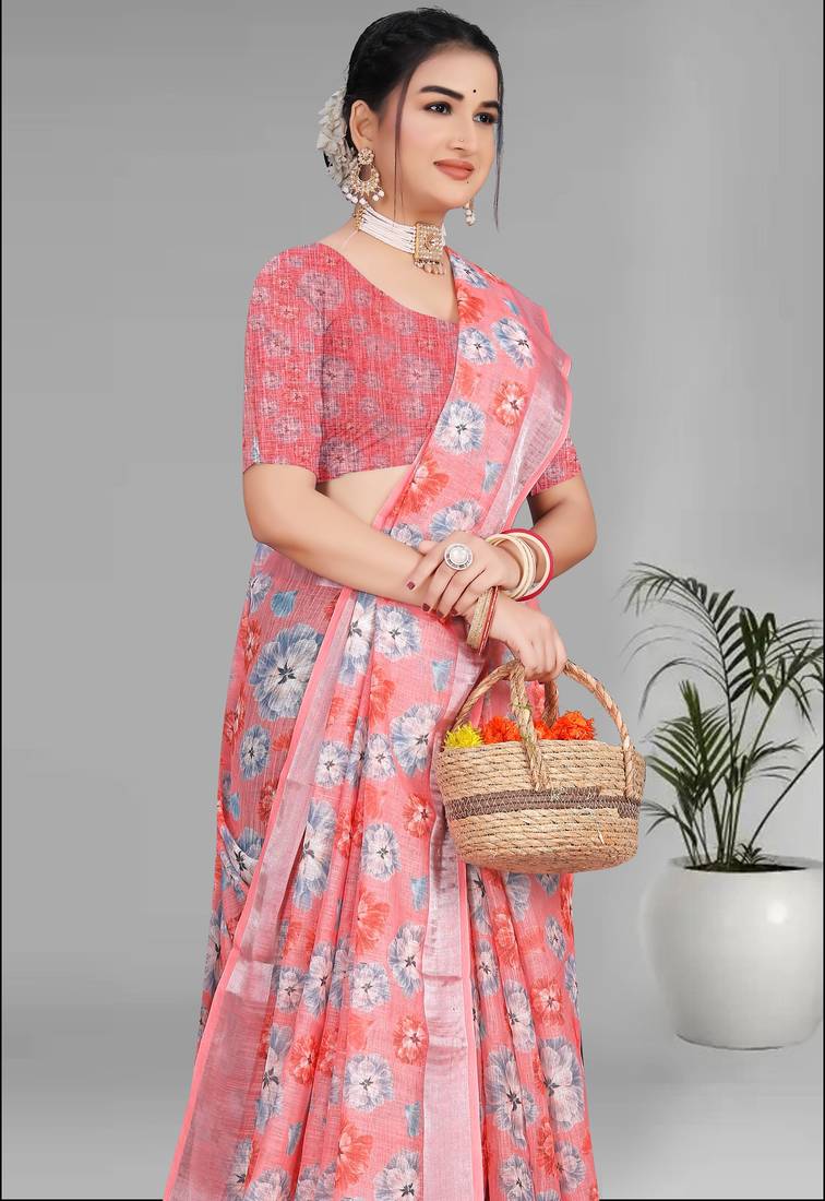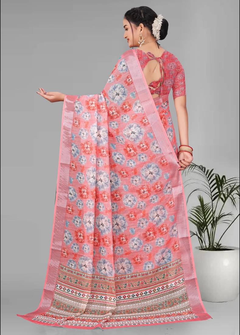 | Product Name | Pink Floral Linen Cotton Digital Print Saree (Pink) | |