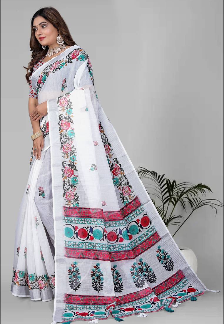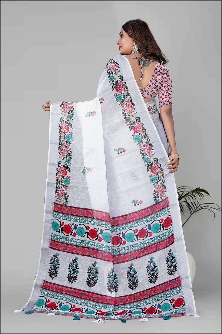 | Product Name | White Floral Linen Cotton Digital Print Saree (White) | |