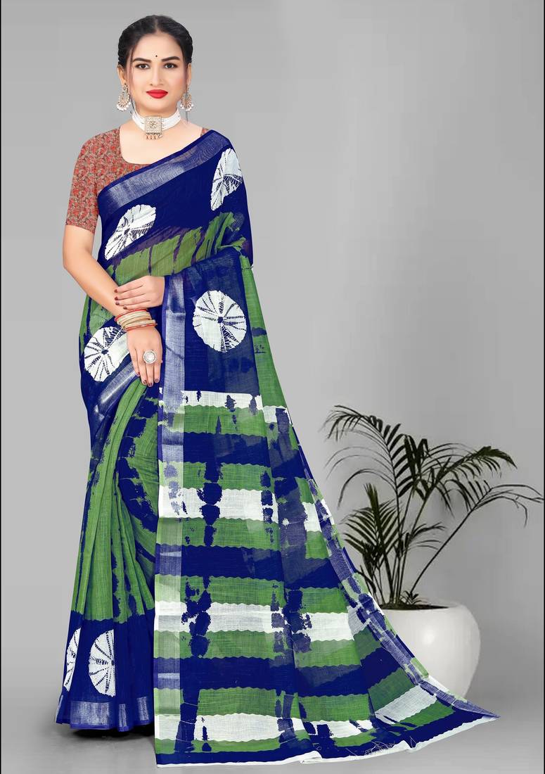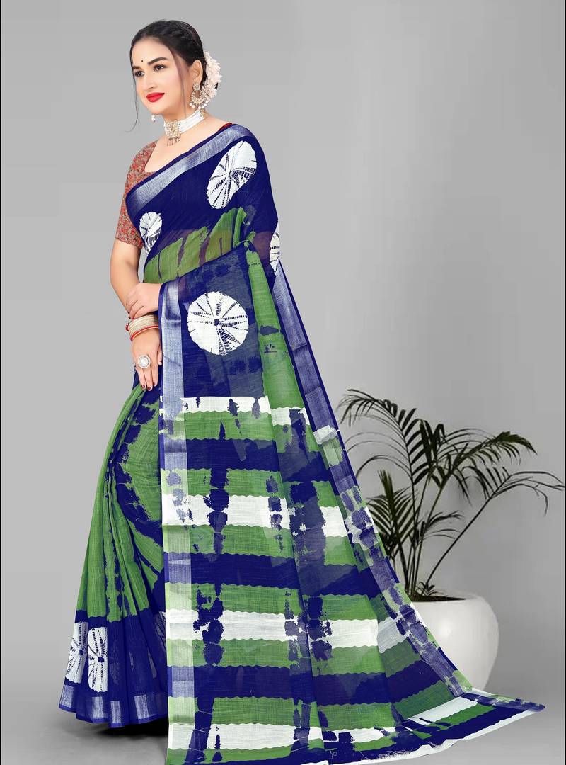 | Product Name | Green Linen Cotton Digital Print Saree (Multi) | |