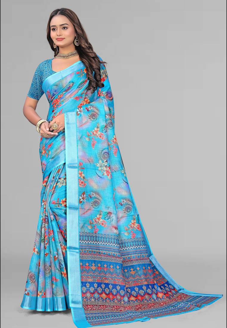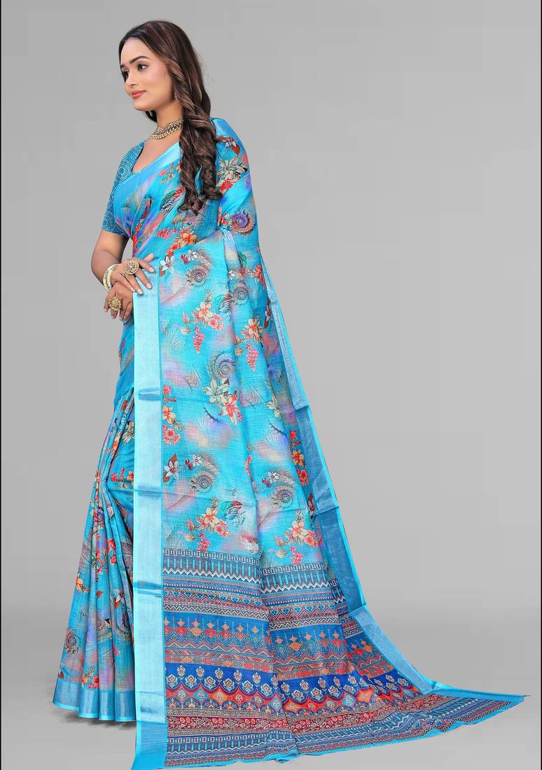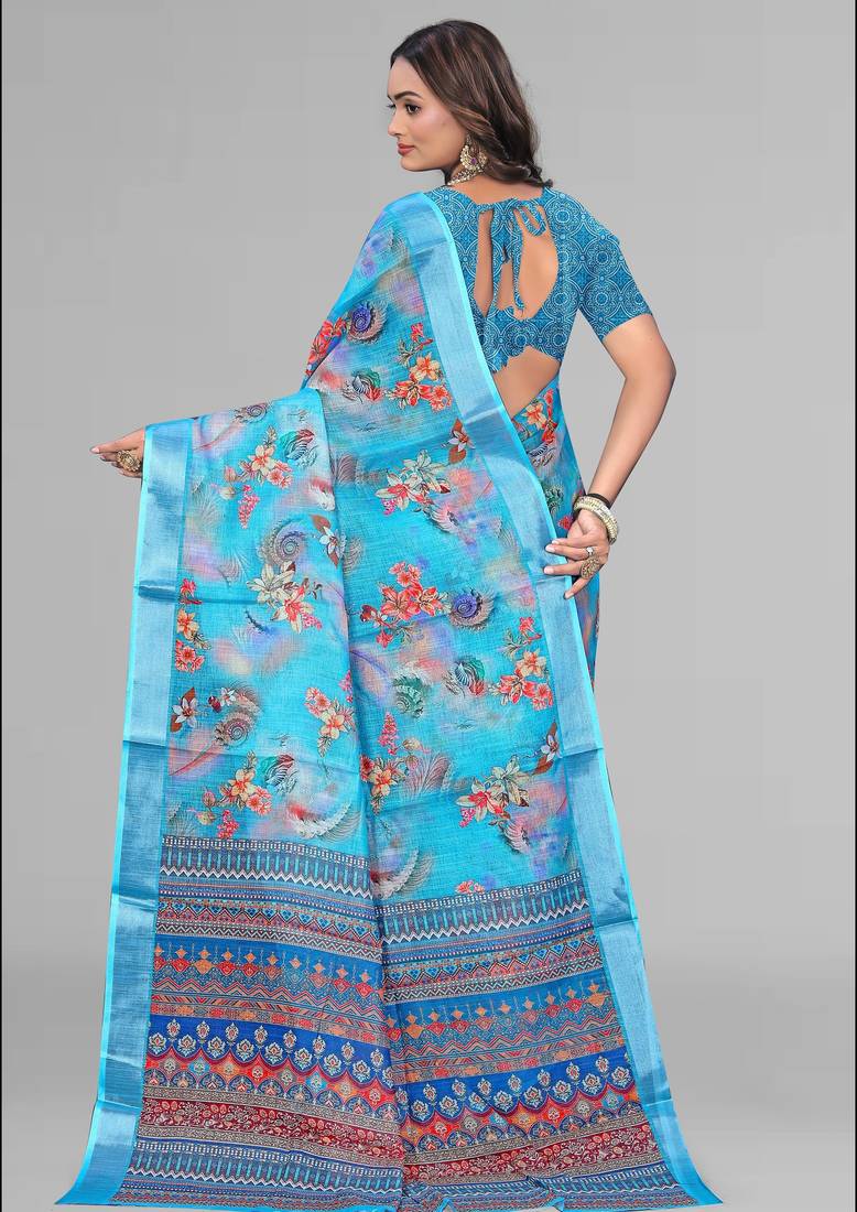 | Product Name | Sky Blue Linen Cotton Digital Print Saree (Sky) | |