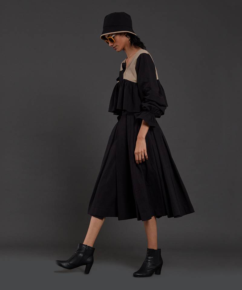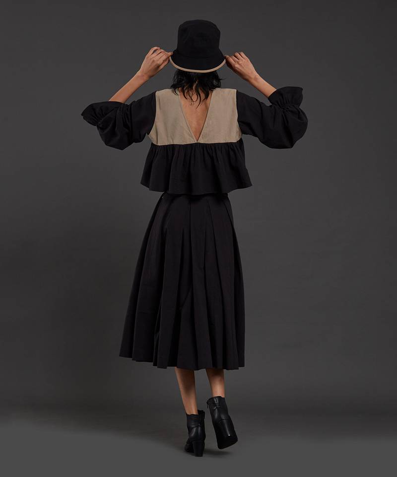 Beige & black bow top