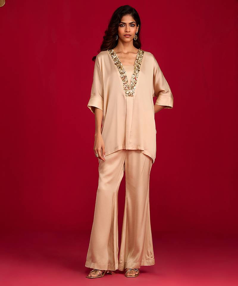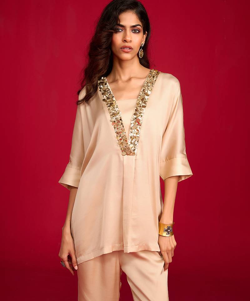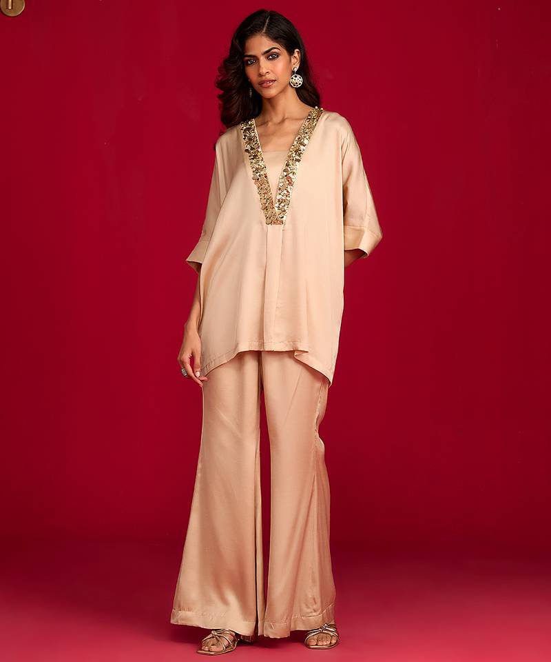 | Product Name | Beige Embroidered Satin Kurta Set | |