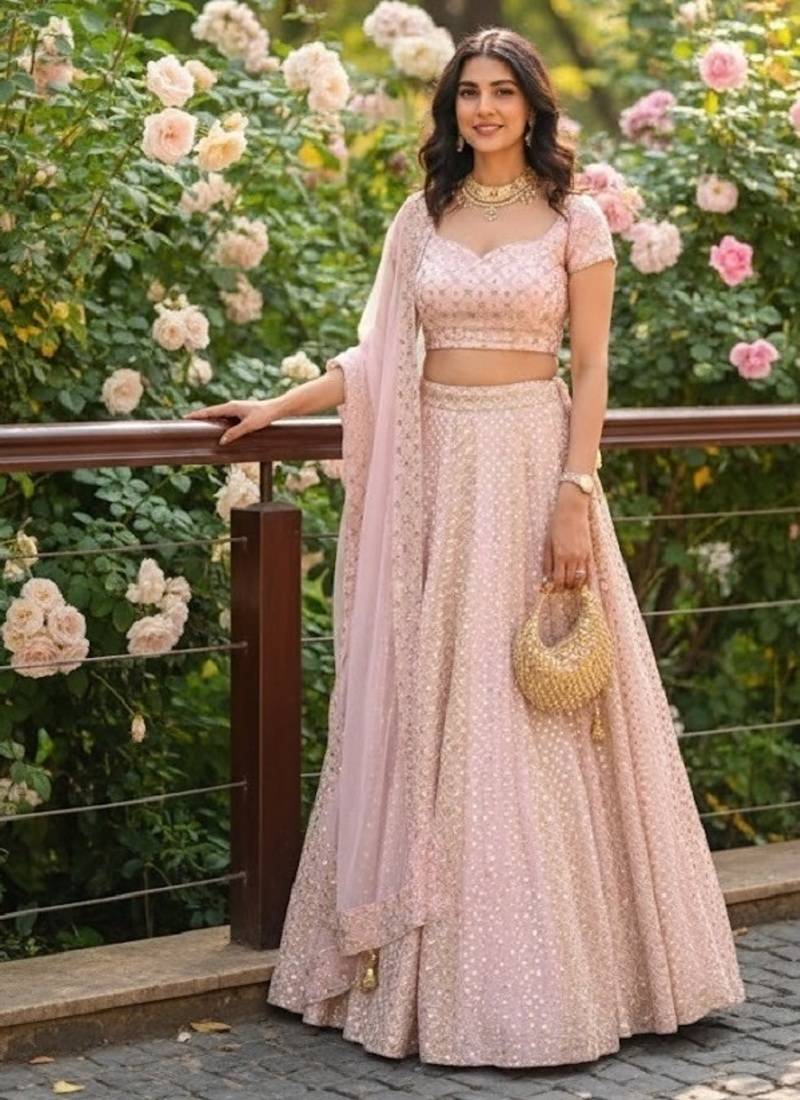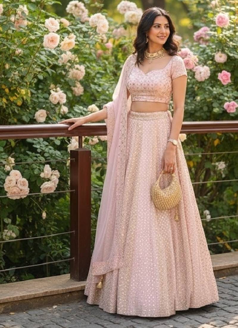 | Product Name | Baby Pink 9mm Sequin And Zari Embroidered Faux Georgette Indian Wedding Lehenga Choli | |