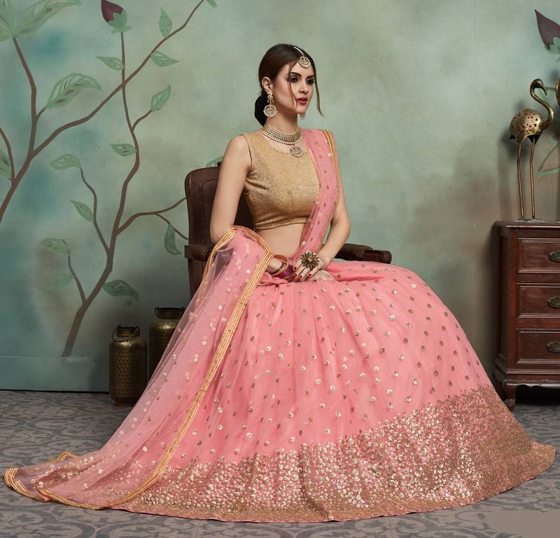 | Product Name | Baby Pink Sequins Embroidered Net Semi Stitched Lehenga | |