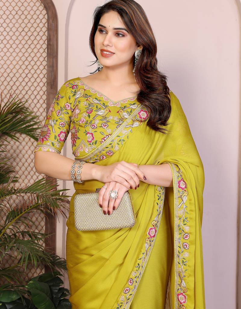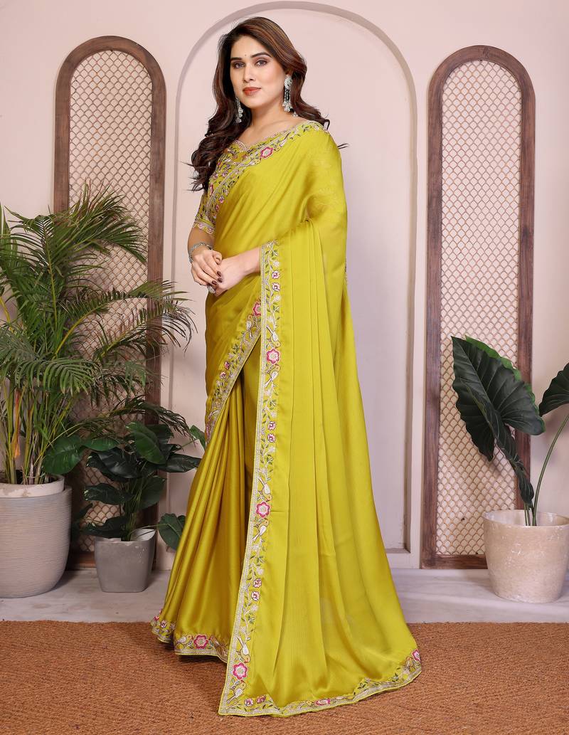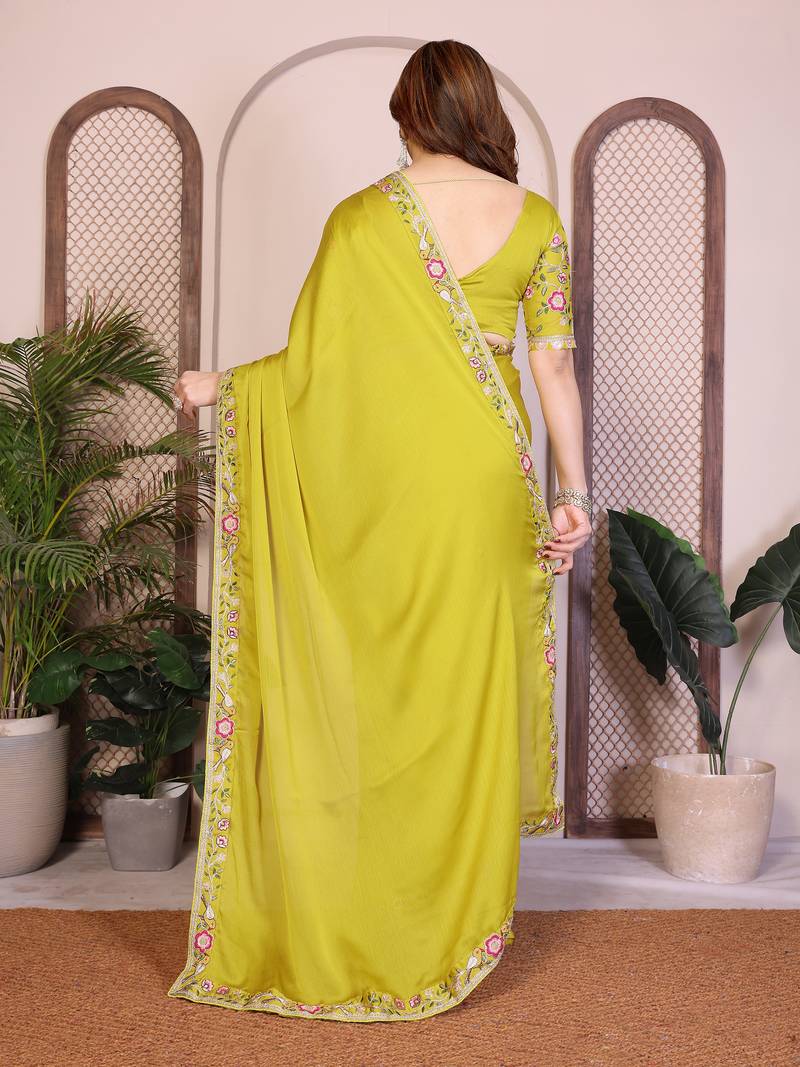 Product Name Bewitching Lime Green Satin Chiffon Embroidery Multi Sequence Work Indian Festival Saree