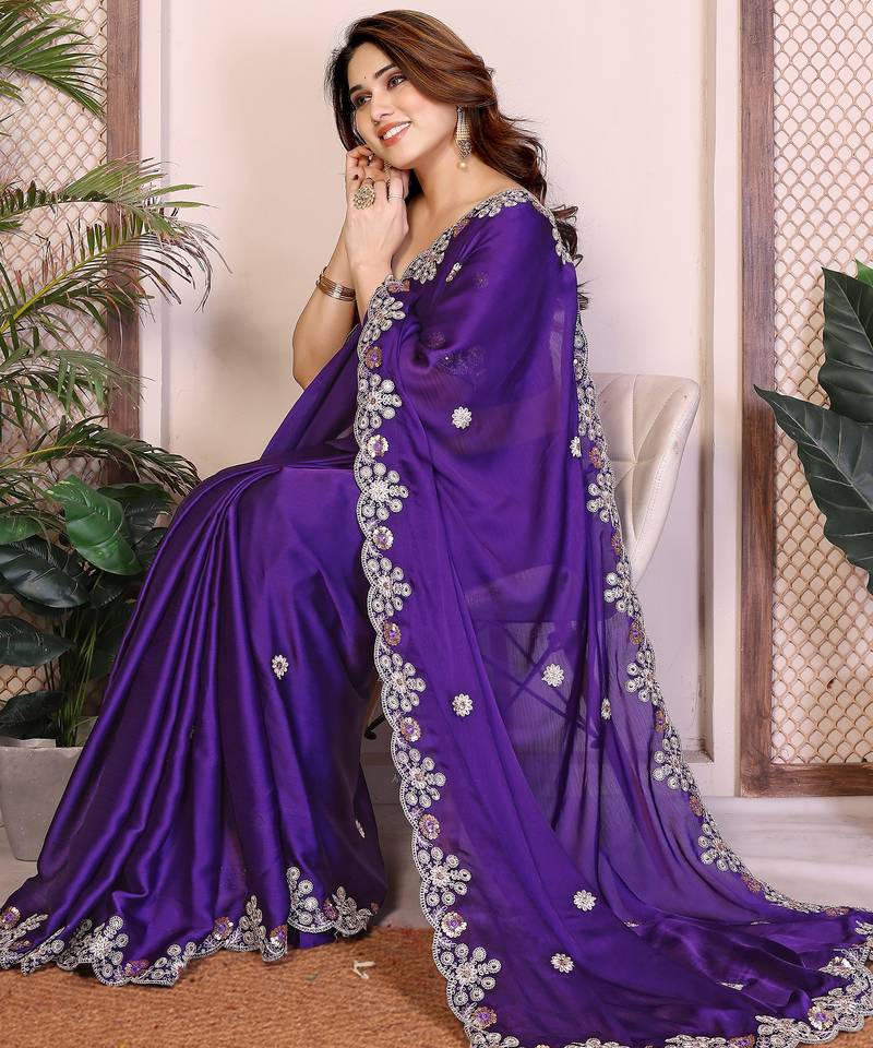 | Product Name | Dazzling Blue Satin Chiffon Embroidery Multi Sequence Work Indian Party Wear Saree | |