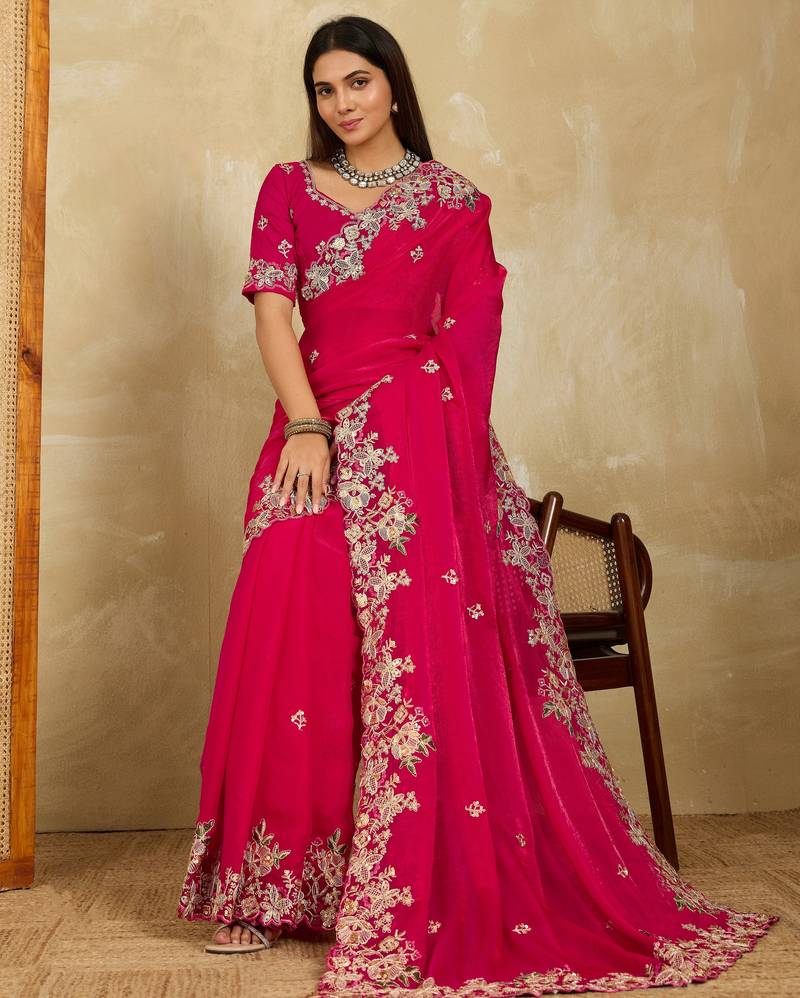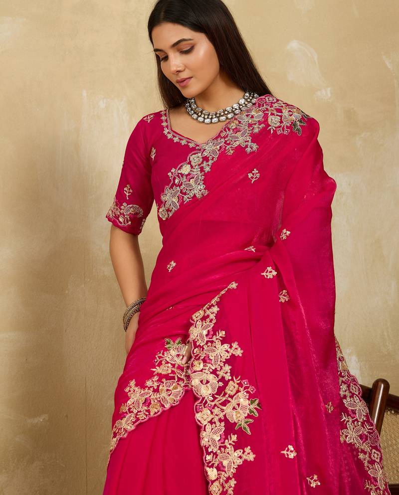 | • | Saree | : | Color- Pink / Fabric- Chiffon |
