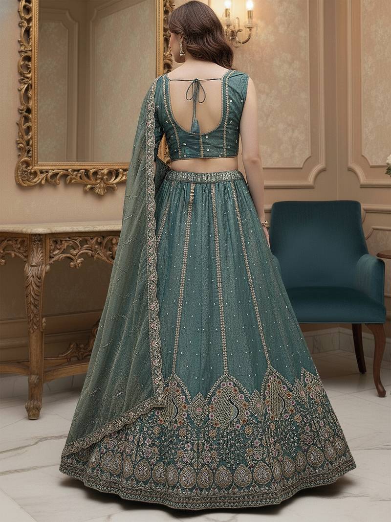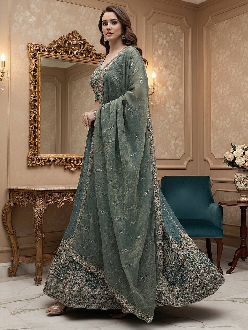 | Product Name | Fetching Grey Peacock Embroidered, Dori, Sequins Embroidered With Zircon Diamond Work Gadhwal Silk Wedding Lehenga | |