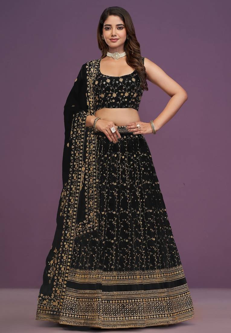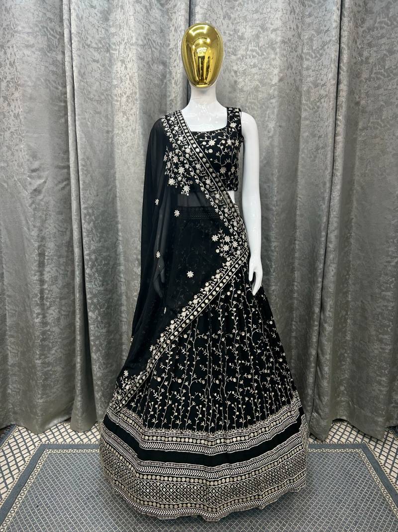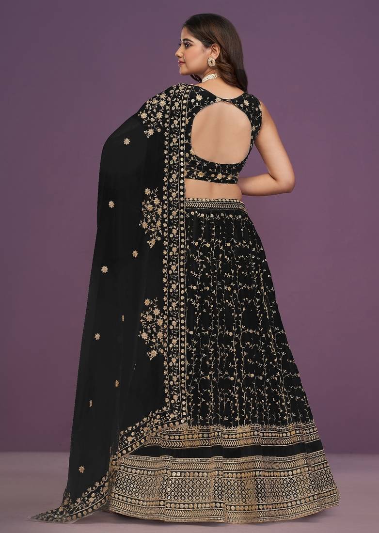 Glamorous black zari and sequins embroidered faux georgette indian wedding designer lehenga choli