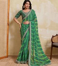 Glamorous green georgette bandhej print with embroidery work lace border saree with mono banglory silk blouse