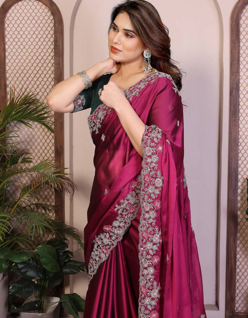 | • | Saree | : | Color- Magenta / Fabric- Art Silk |