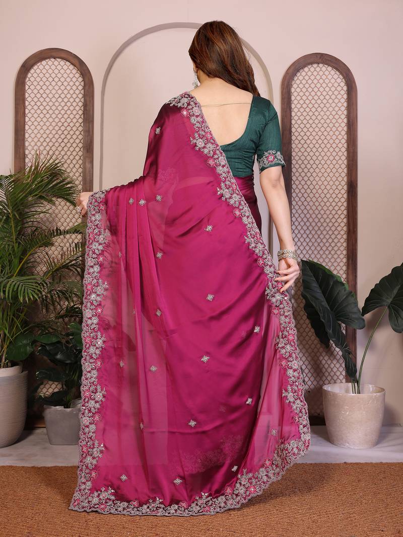| Product Name | Glamorous Magenta Pink Rangoli Silk Embroidery Multi Sequence Work Indian Bollywood Saree | |