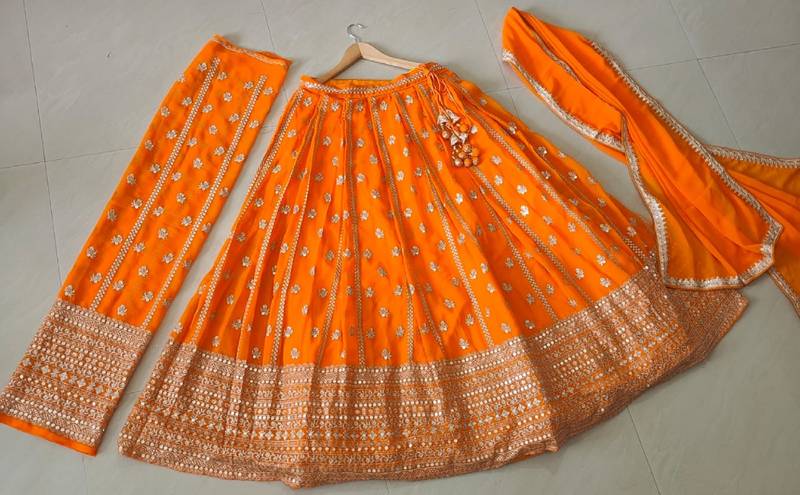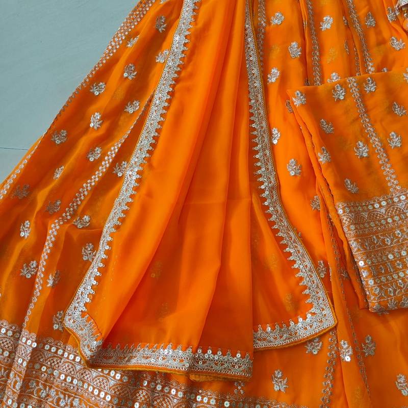 | Product Name | Orange Radiance 7 Mm And 3 Mm Matte Sequins With Zari Embroidered Georgette Lehenga Choli | |