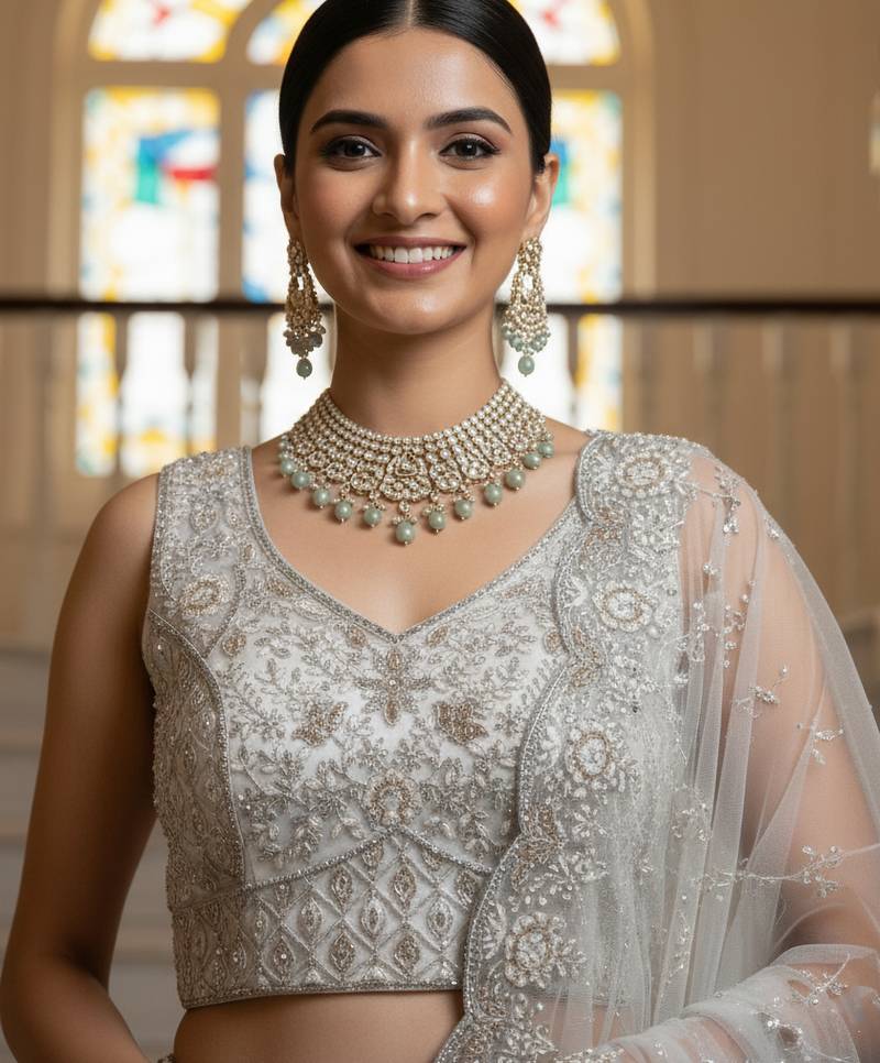 Product Name Spellbinding White White Pearl Beads, Thread Work, Zari And Dori Embroidered, Zircon Diamond Heavy Net Lehenga Choli