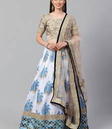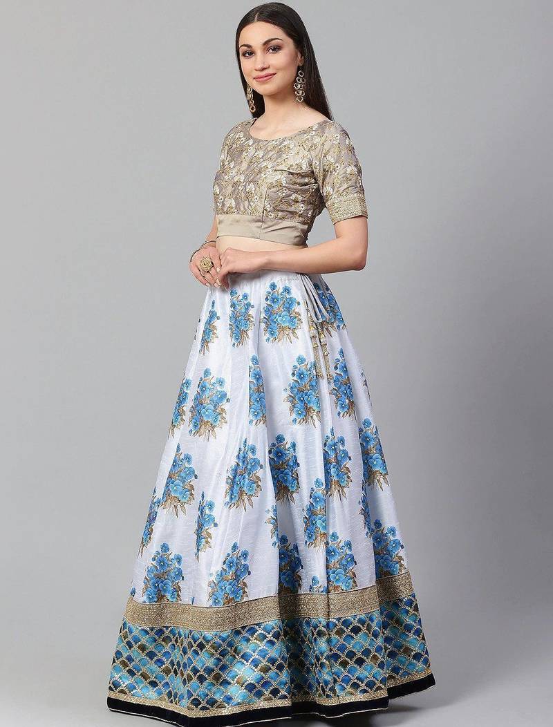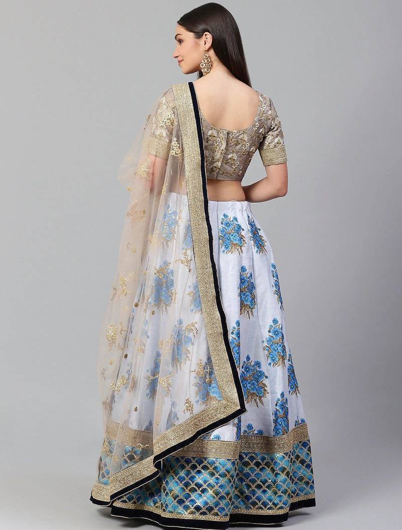 | Product Description | White, Taupe And Blue Digital Print Semi Stitched Lehenga And Unstitched Choli With Dupatta