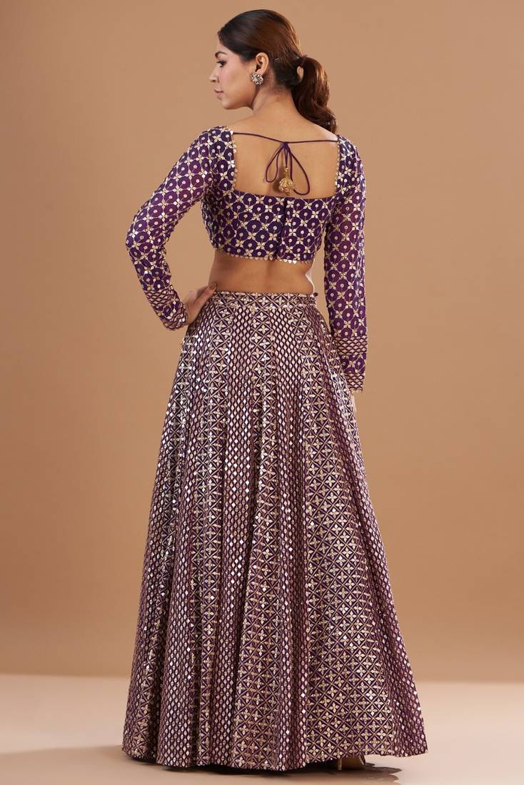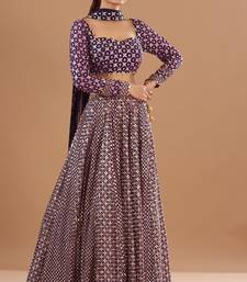 Wine zari and sequin embroidered faux georgette indian party wear lehenga choli