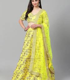 Yellow & gold-toned embroidered semi-stitched myntra party wear lehenga & unstitched blouse with dupatta