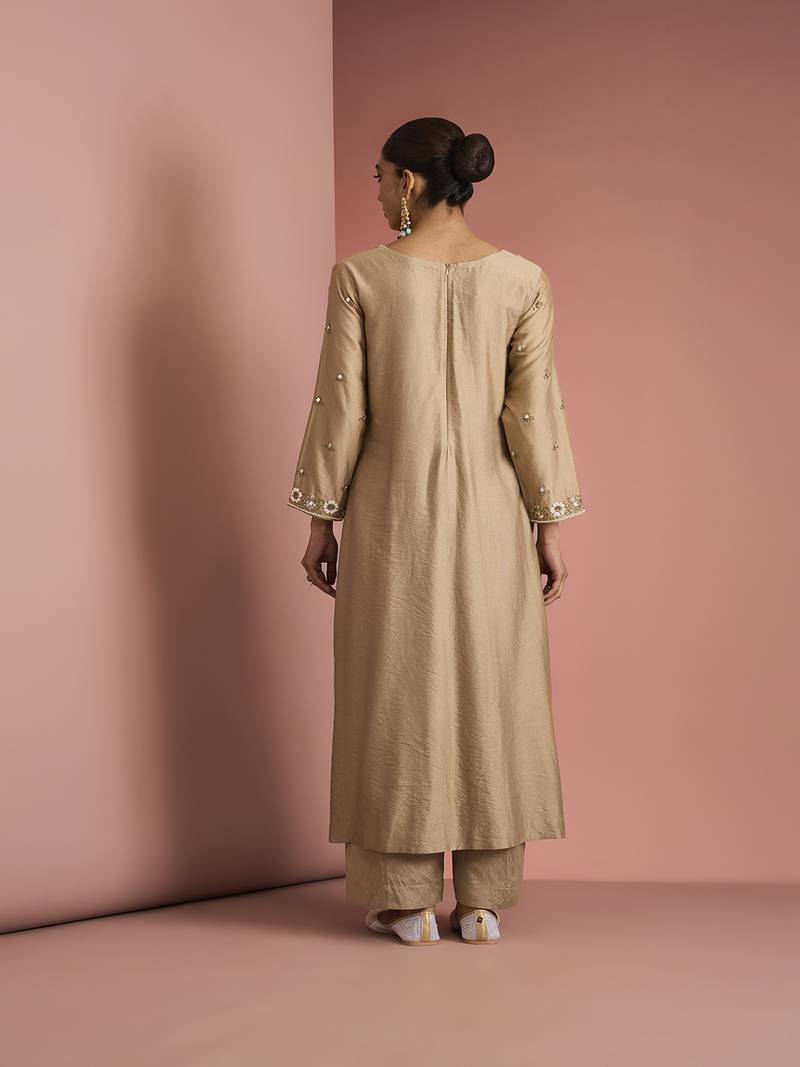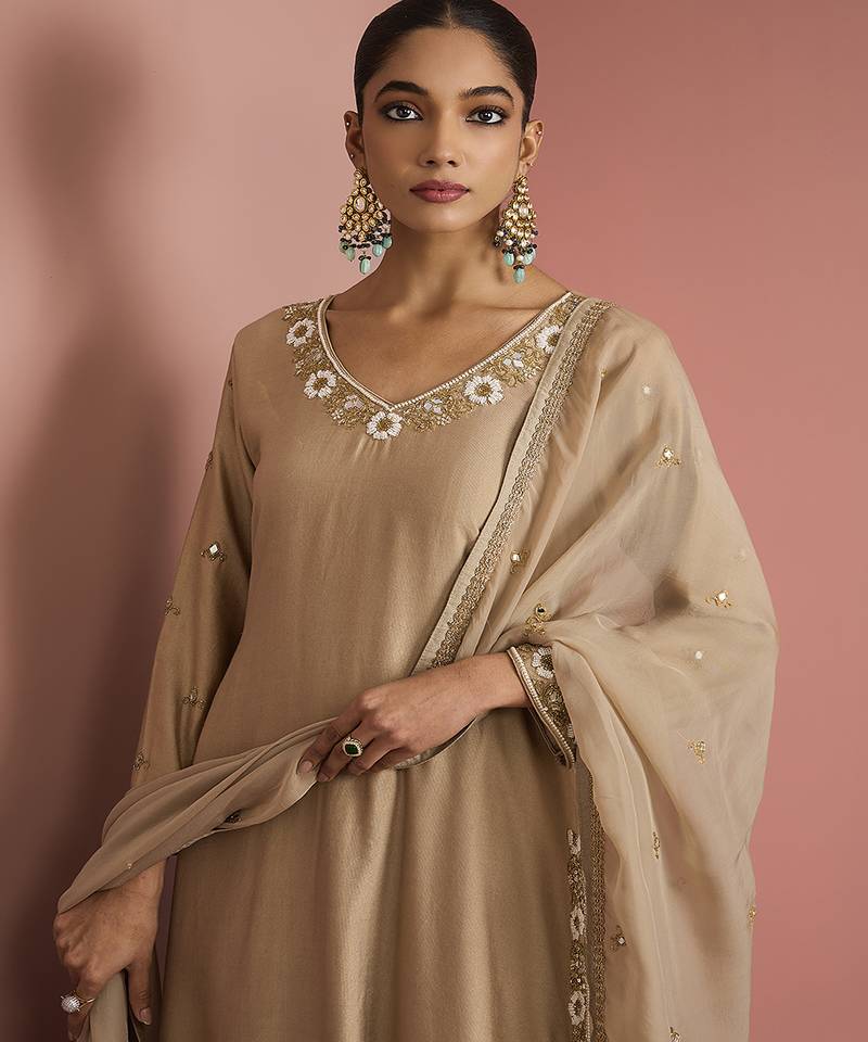 | Product Name | Beige Katan Silk Kurta Pant Set With Organza Dupatta | |