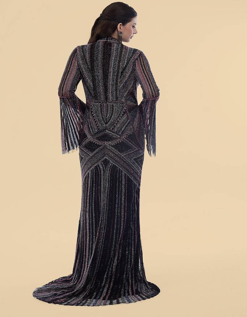 Product Name Black Net Backtrail Gown With Heavy Beadwork
