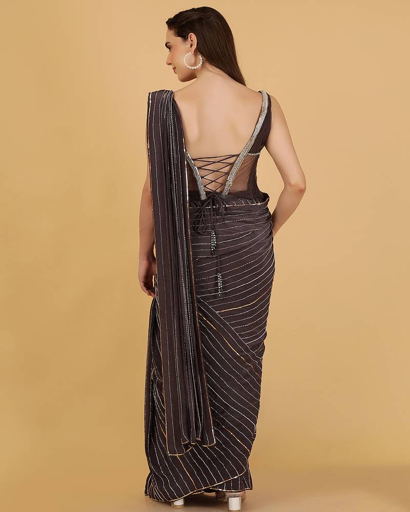 Dark grey crepe corset and saree with sequins cutdana and pearl embroidery