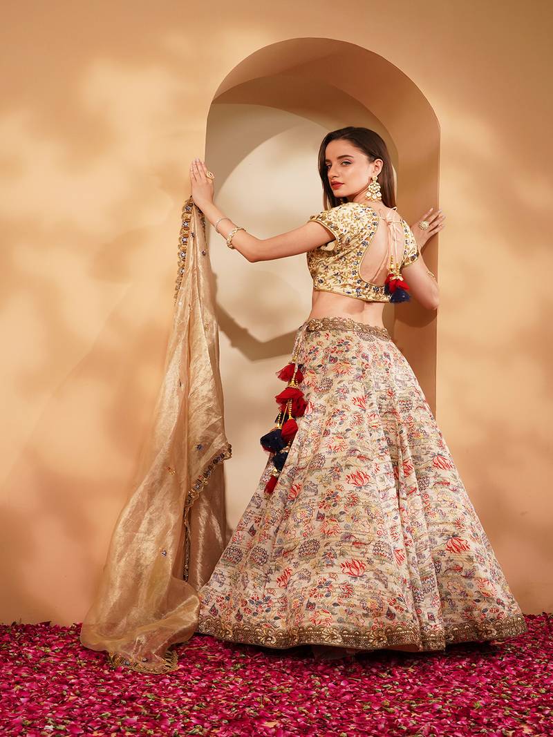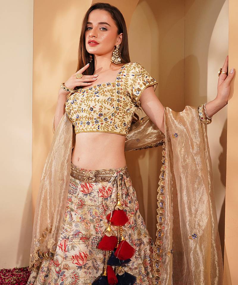 | Product Name | Light Beige Gicha Silk Printed Lehenga Set With Hand Embroidered Blouse And Dupatta | |